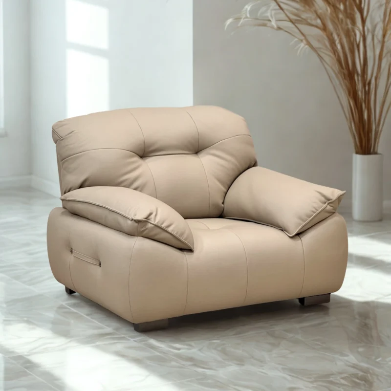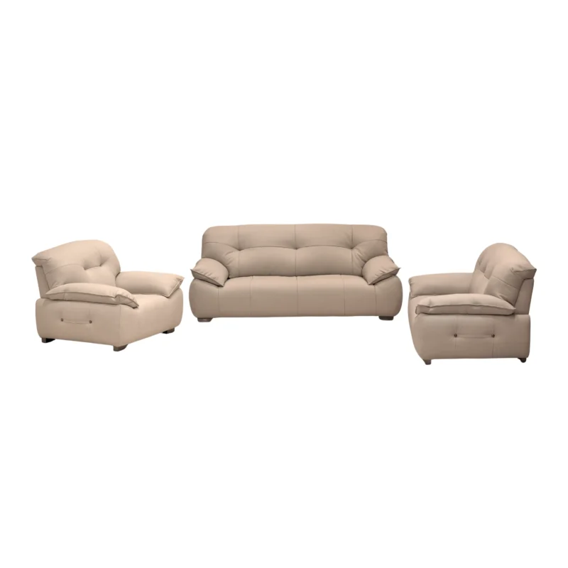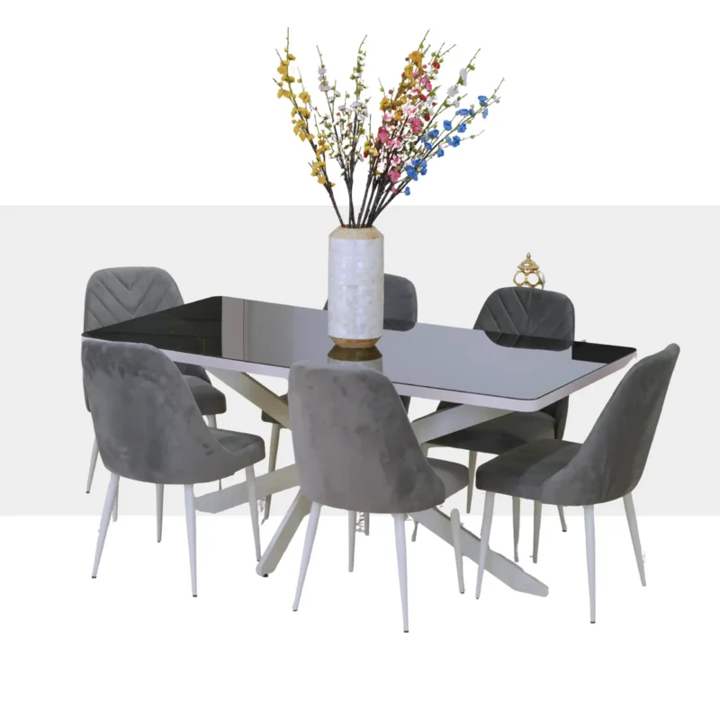Ensemble 6 places au style moderne, conçu pour le confort avec des zones de contact en cuir. Finitions soignées et assises généreuses pour une ambiance chaleureuse et élégante.