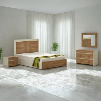 Un design moderne et épuré qui allie élégance et fonctionnalité. La chambre Vision se compose d’un grand lit double au style contemporain, accompagné de tables de chevet assorties et d’une armoire spacieuse. Les finitions en bois clair et blanc apportent luminosité et chaleur à l’espace, créant une ambiance cosy et accueillante. Idéale pour ceux qui recherchent un mobilier esthétique et pratique, offrant de grands espaces de rangement tout en mettant en valeur la chambre.