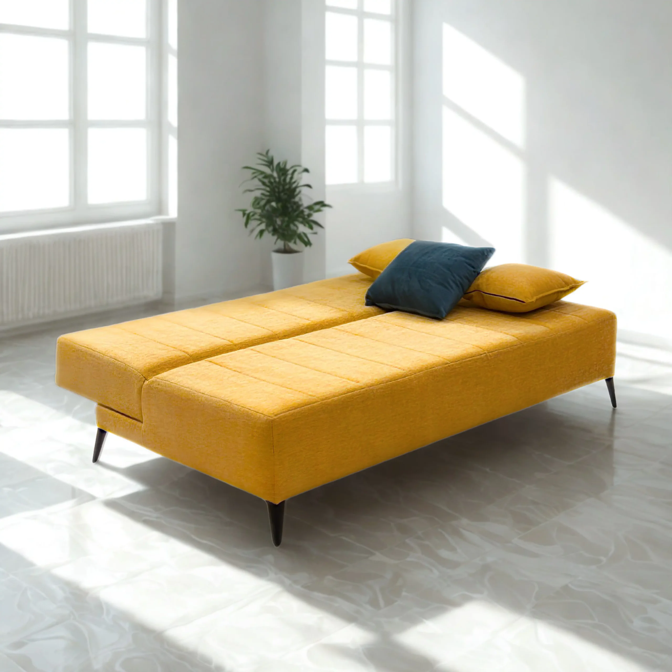 Convertible en lit en un geste, avec tissu doux et lumineux qui apporte chaleur à votre intérieur.
